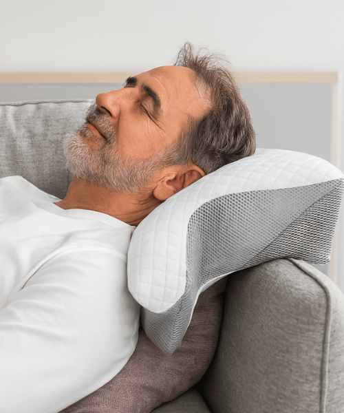 Die Wolkenstütze Pro wurde so entwickelt, dass sie sich dank Memory-Schaum individuell an jede Kopfform anpasst und eine neutrale Wirbelsäulenhaltung unterstützt.